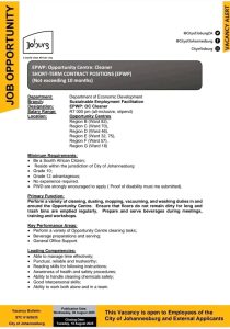 Employer: City of Johannesburg – Department of Economic Development
