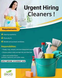 The cleaning industry in South Africa is one of the most stable employment sectors, offering opportunities for people with various backgrounds, including those with no formal work experience. ECO Cleaning Service, a respected and growing company, is now hiring cleaners and laundry staff for various locations. This recruitment drive is perfect for individuals looking to start a career in professional cleaning, particularly with an eco-friendly, sustainable cleaning company that values staff growth and well-being.